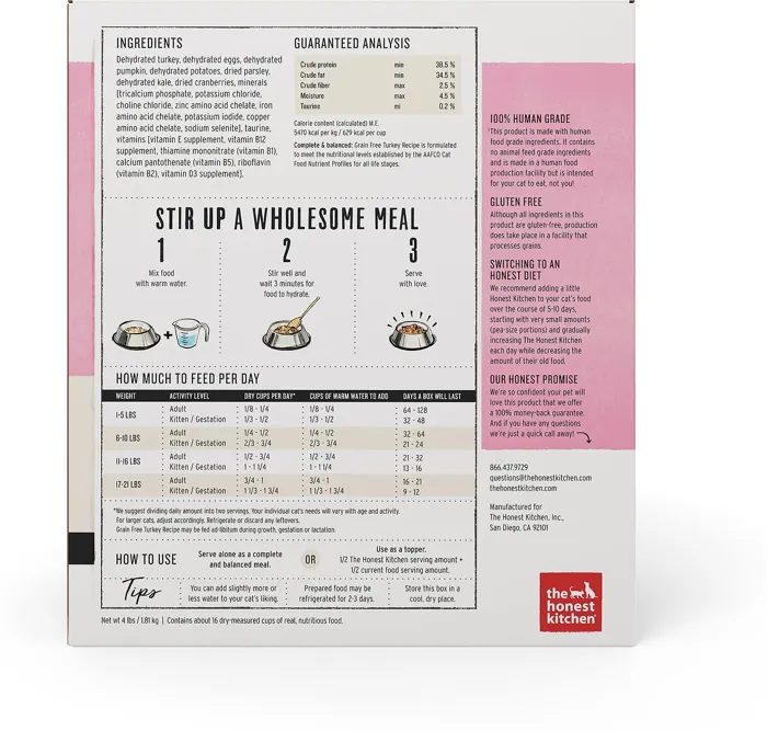 Honest Kitchen Cat GF Turkey 4#