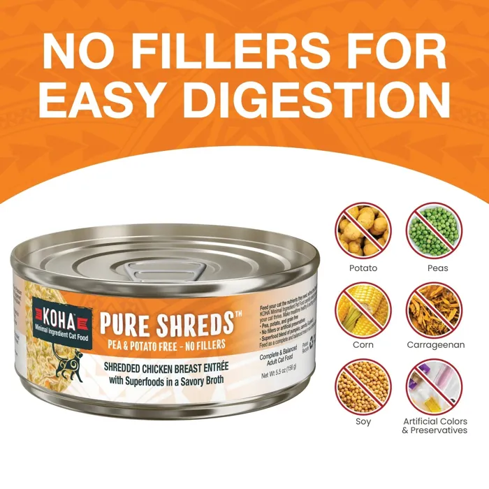 Koha Cat Can Pure Shreds Chicken 5.5 Oz