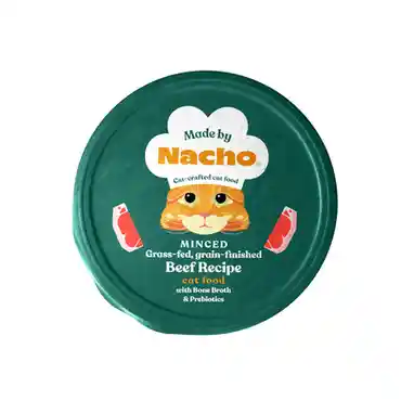 Minced Grass Fed Grain Finished Beef Recipe Cat Food With Bone Broth And Prebiotics Cup - 2.5oz