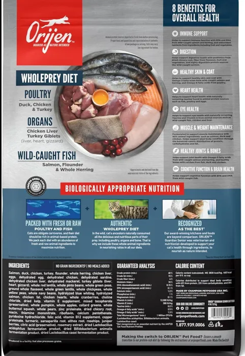 - Includes nourishing WholePrey inclusions that are rich with amino and fatty acids, and almost all the nutrients your cat needs.
