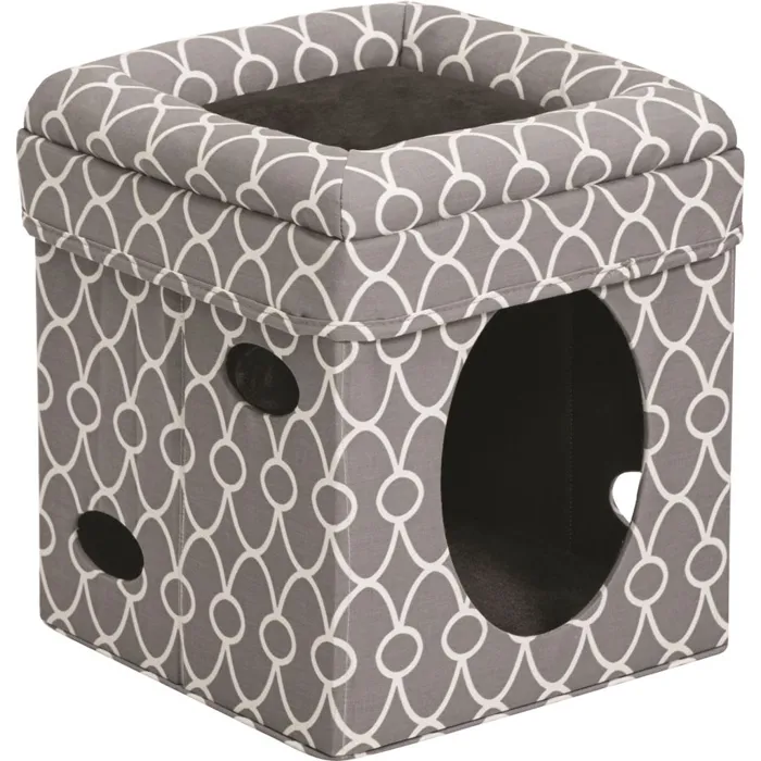 Mid-West Cat Cube - Geo Print Gray