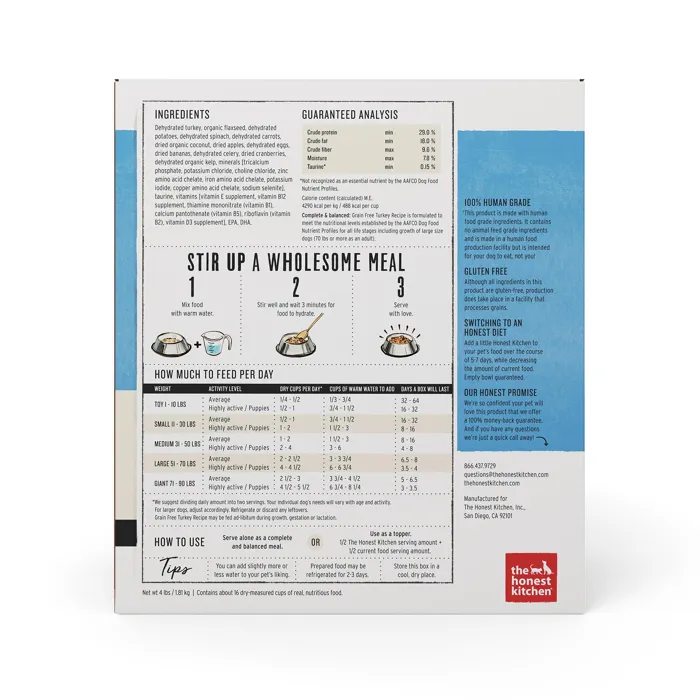 Honest Kitchen Dog GF Turkey 4#