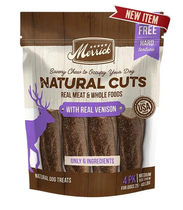 Merrick Nat Cut Venison Chew Md 4ct