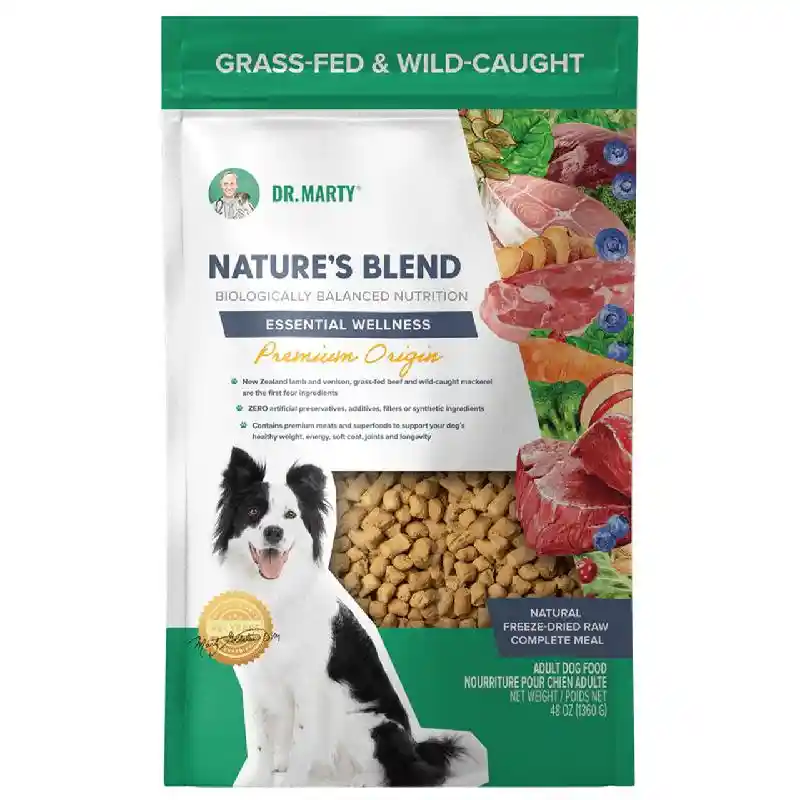 Dr. Marty Natureโs Blend โ Essential Wellness Premium Origin is a premium freeze-dried raw food made with premium meats and superfoods to support your dogโs healthy weight, energy, soft coat, joints, and longevityโฆ with ZERO artificial preservatives, or fillers.