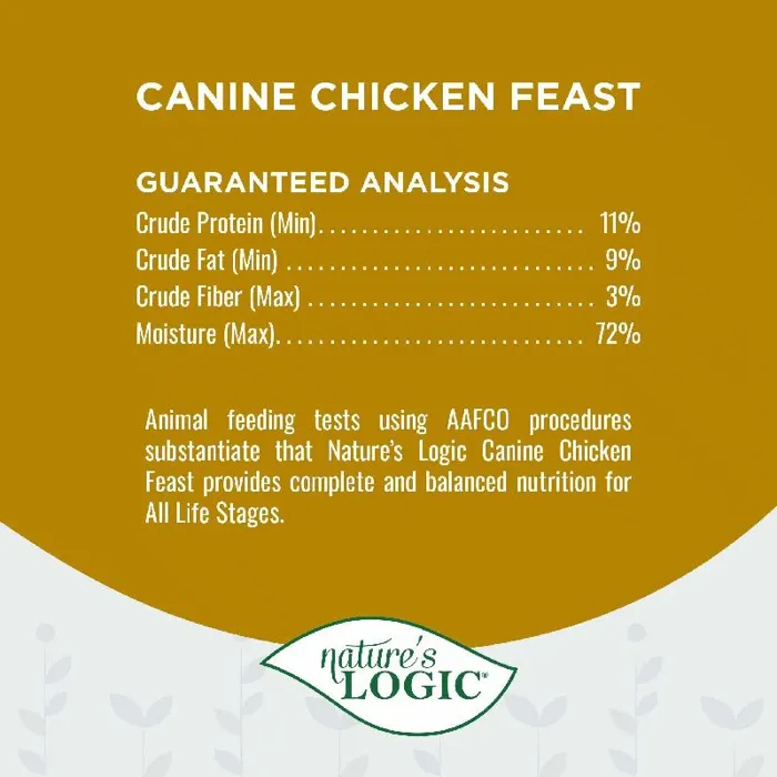 Animal feeding tests using AAFCO procedures substantiate that Nature’s Logic Canine Chicken Feast provides complete and balanced nutrition for All Life Stages.