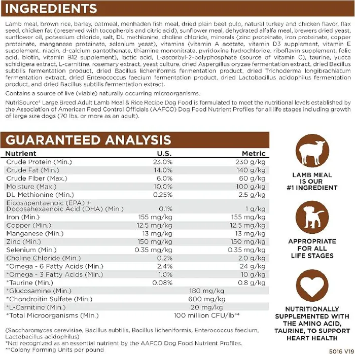 Nutrisource Large Breed Lamb & Rice 26#