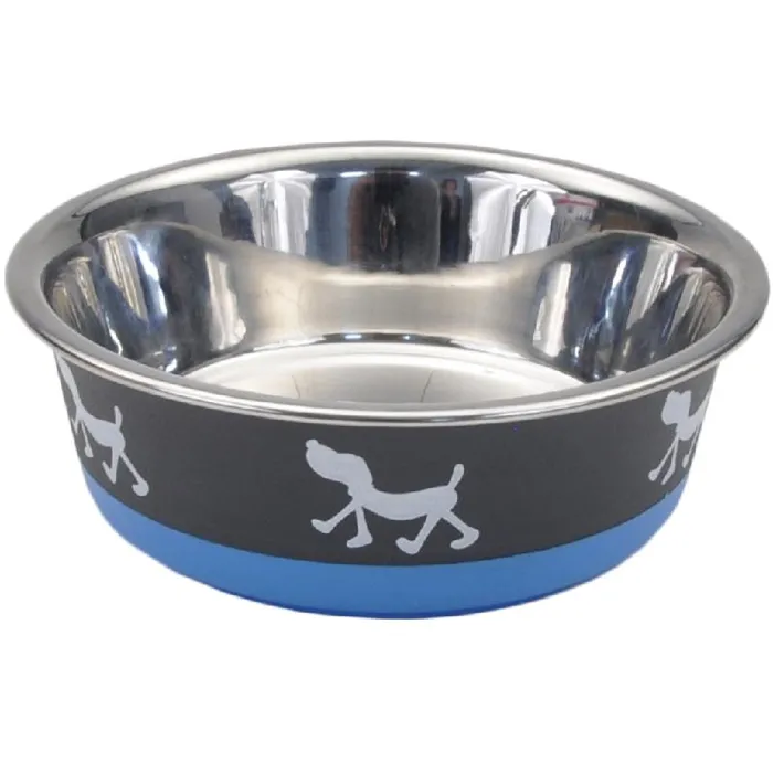Design Series Non Skid Pup Design Dog Bowls - Blue And Grey 54oz