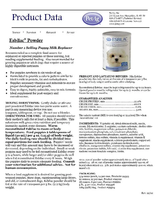 Esbilac Puppy Milk Replacer Powder 12 oz