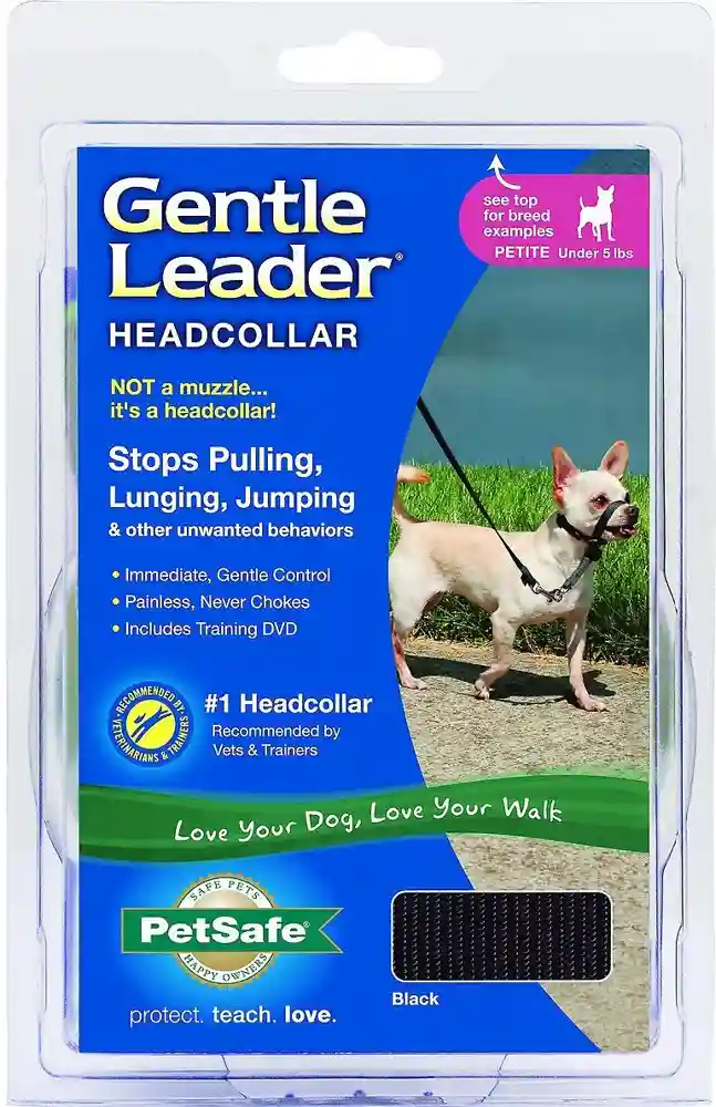 If your pooch is an extrovert who gets a little too excited on walks, take control of the leash with the PetSafeยฎ Gentle Leaderยฎ Headcollar. Created by a veterinary behaviorist over 30 years ago, this headcollar immediately, gently and safely helps you control unwanted leash behaviors like pulling, lunging, barking and jumping. A comfortable neoprene padded nose loop and collar puts pressure on the back of the neck instead of your dogโs throat, which prevents choking and coughing. Easily fit the headcollar on your furry friend in just a few minutes using the adjustable nose loop and neck strap with quick-snap. Our perfect-fit guarantee ensures the headcollar fits petite pups, giant pooches and all canine sizes in between. And, if your dog decides to turn the headcollar into a chew toy, we have a 1-year chew damage replacement policy for a minimal fee.