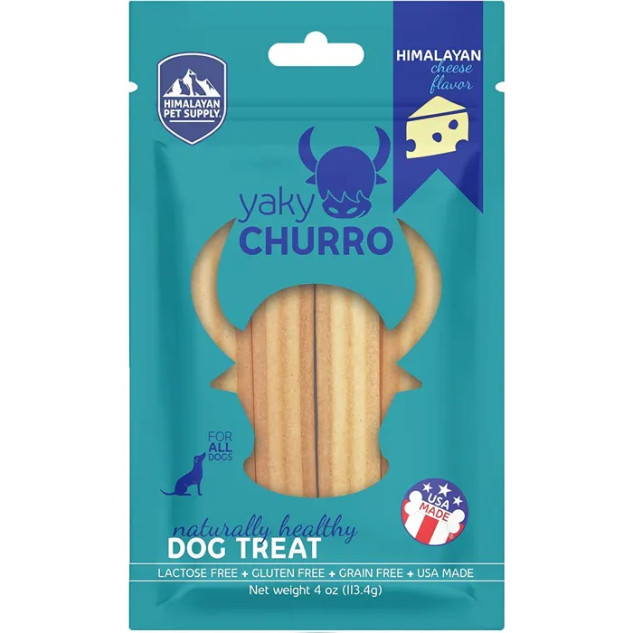 Himalayan Dog Chew is known for making innovative treats from Himalayan hard cheese, and their Yaky Churro Himalayan Cheese Dog Treats provide a uniquely delicious example. These authentic treats are made in the USA, but they follow an ancient recipe that converts milk into hard cheese using the same methods and techniques perfected by the people of the Himalayas. A dash of salt and splash of lime are added, and the cheese is sundried, smoked and made into a chewy churro stick. The result is a smoky cheese-flavored treat with a softer texture that’s easier for all dogs to chew, even puppies and seniors.