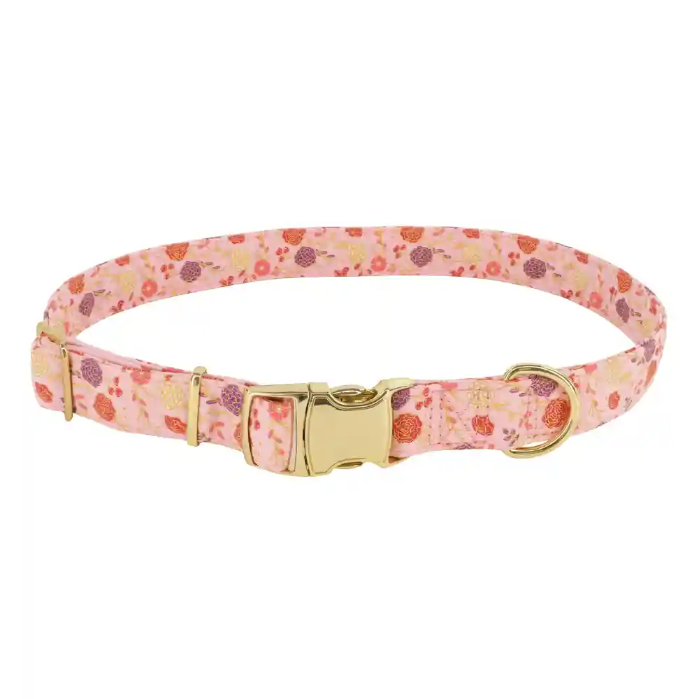 Metallic Adjustable Dog Collar- Delicate Pink Flowers- Lrg - 1" X 18"-26"