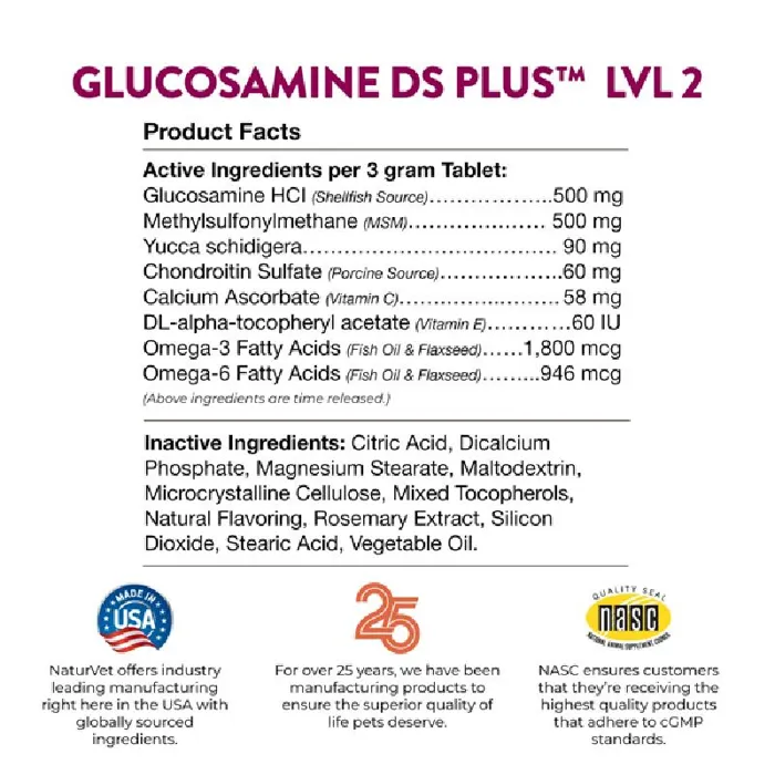 NaturVet Glucosamine DS Plus Tablets 120ct