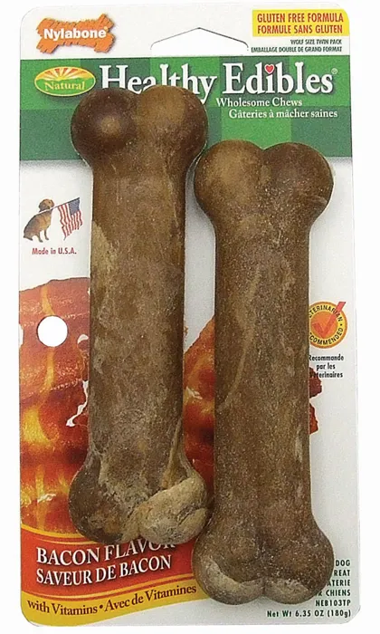 Nylabone Edibles Bacon Bone Wolf Twin Pack