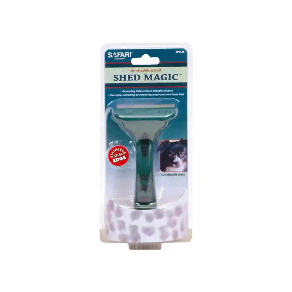 Safari shed magic deshedding tool for dogs - with med to long hair.