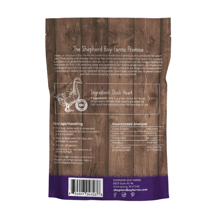 SBF Freeze Dried Duck Heart Treats 3oz